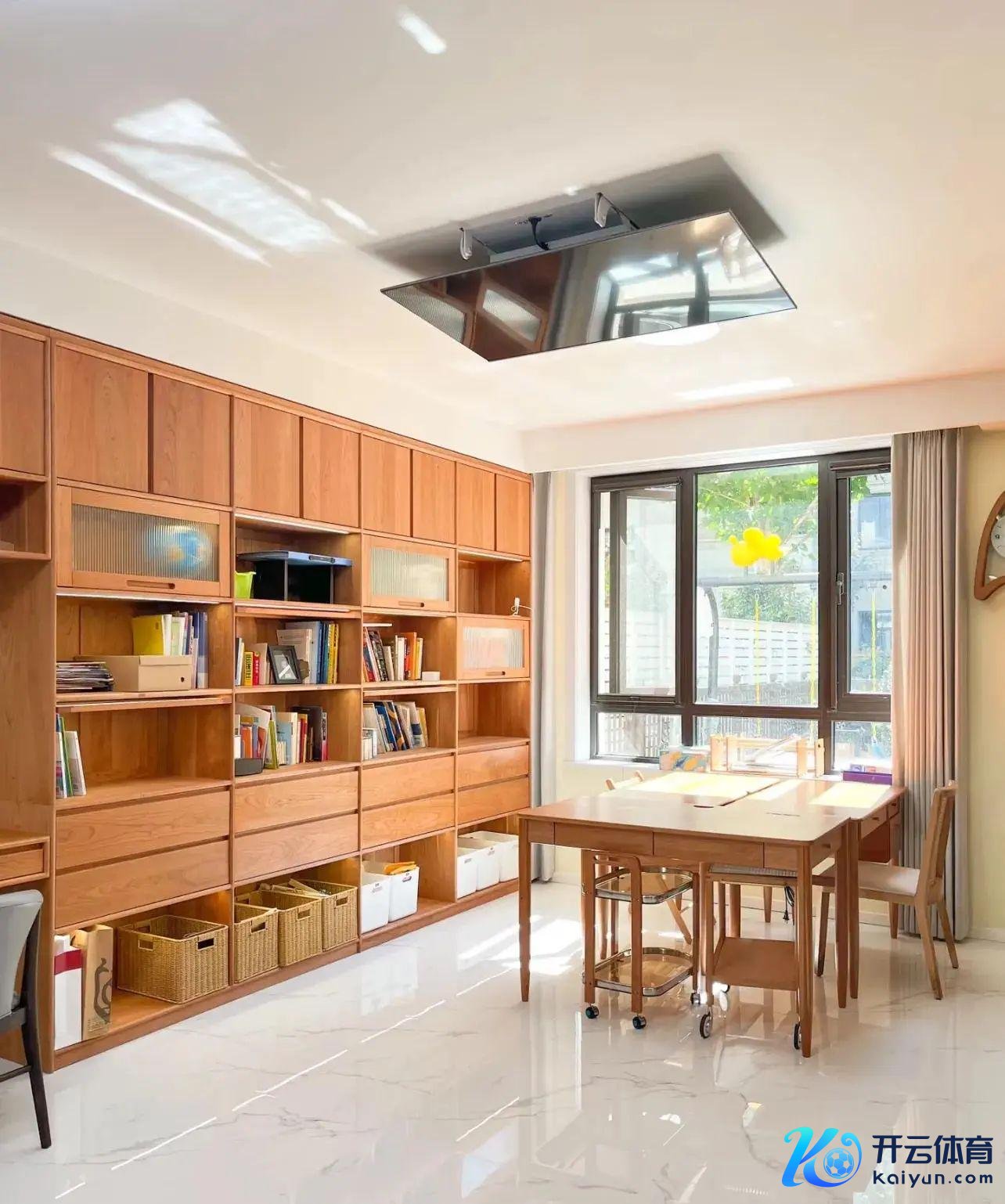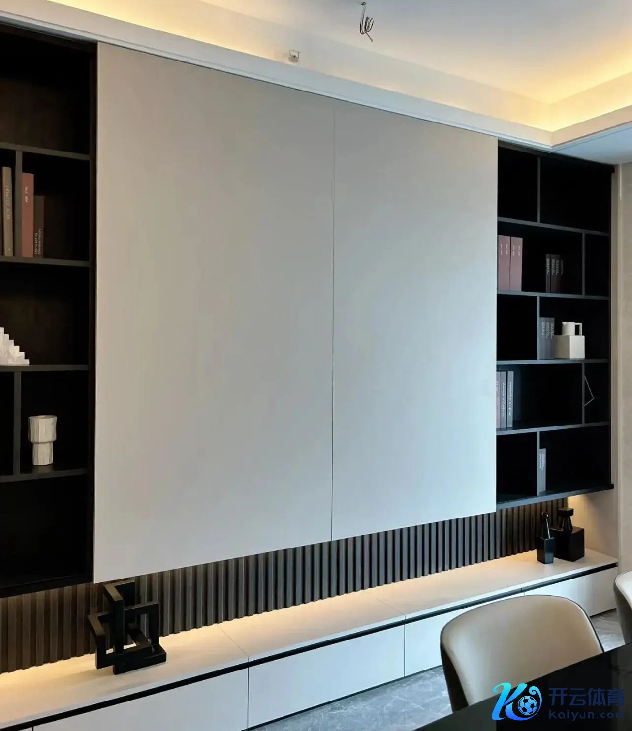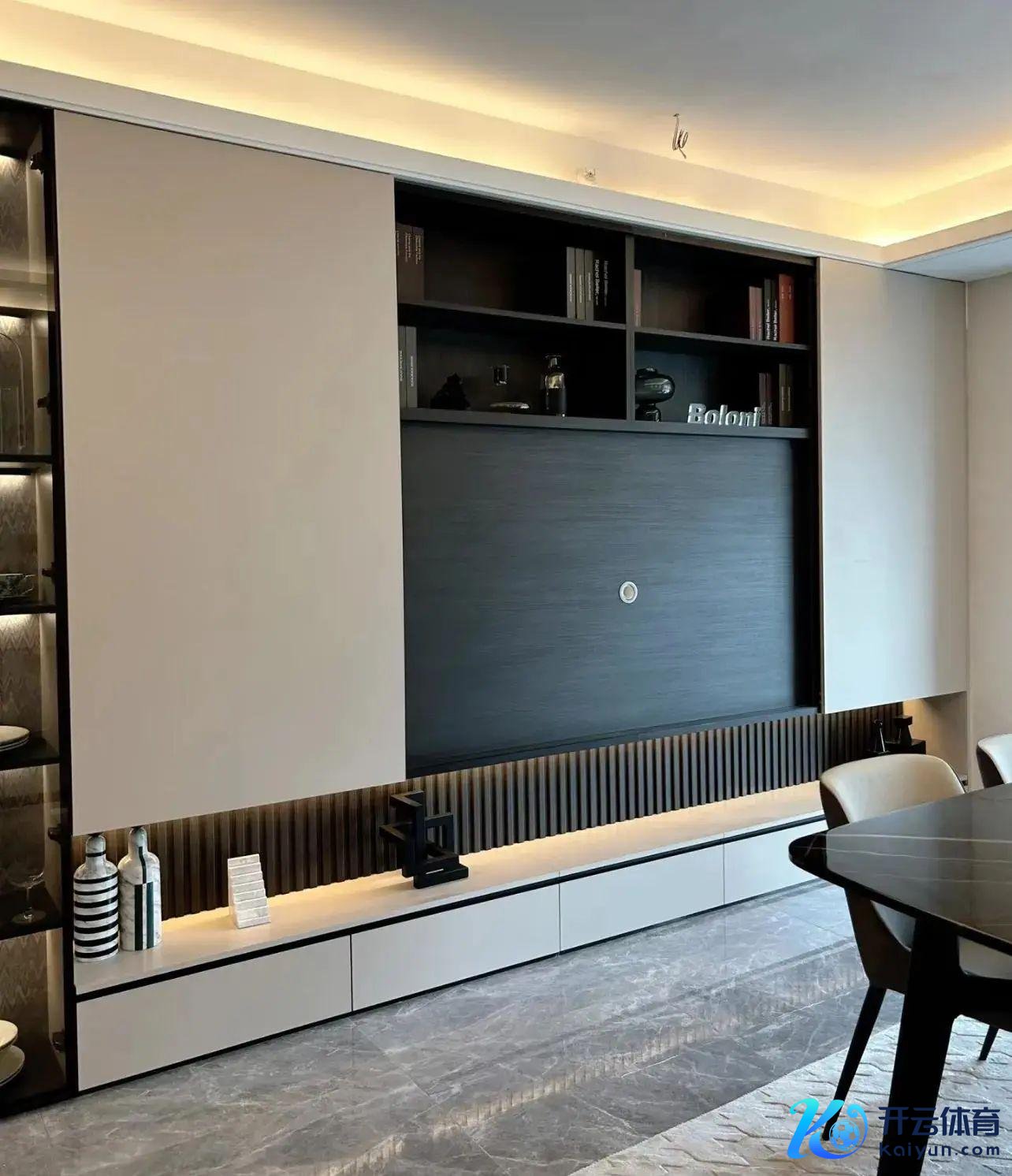 这样作念很顺应当下“去客厅化”的念念路,平时家里的客厅可以像书斋一样,放下电视,又能振作偶尔的看电视需求。