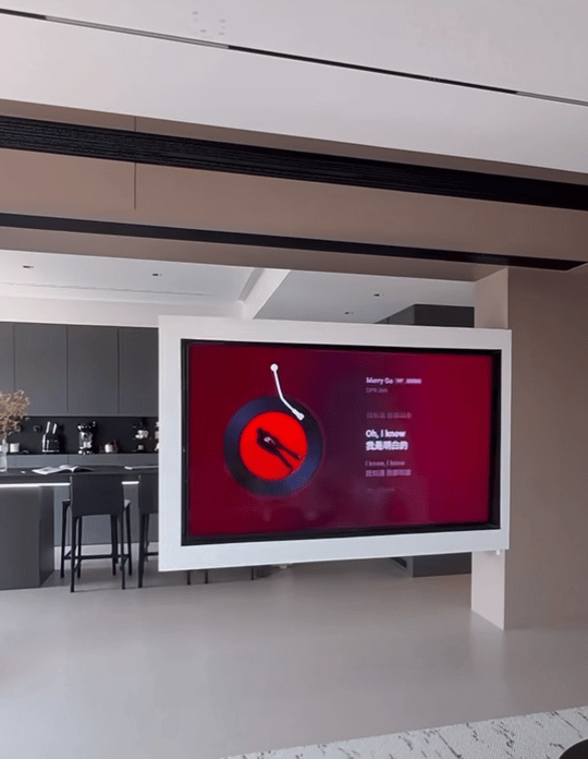 这一面旋转电视墙,一共破耗4000多,与好多凡俗的电视墙破耗是相配的,然而它是干扰的两端都可以看电视,旋转提示还可以接入智能家居,语音、敲击……形势都可以旋转!