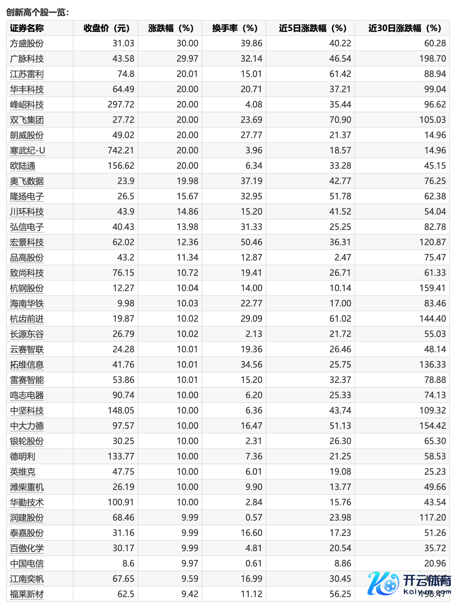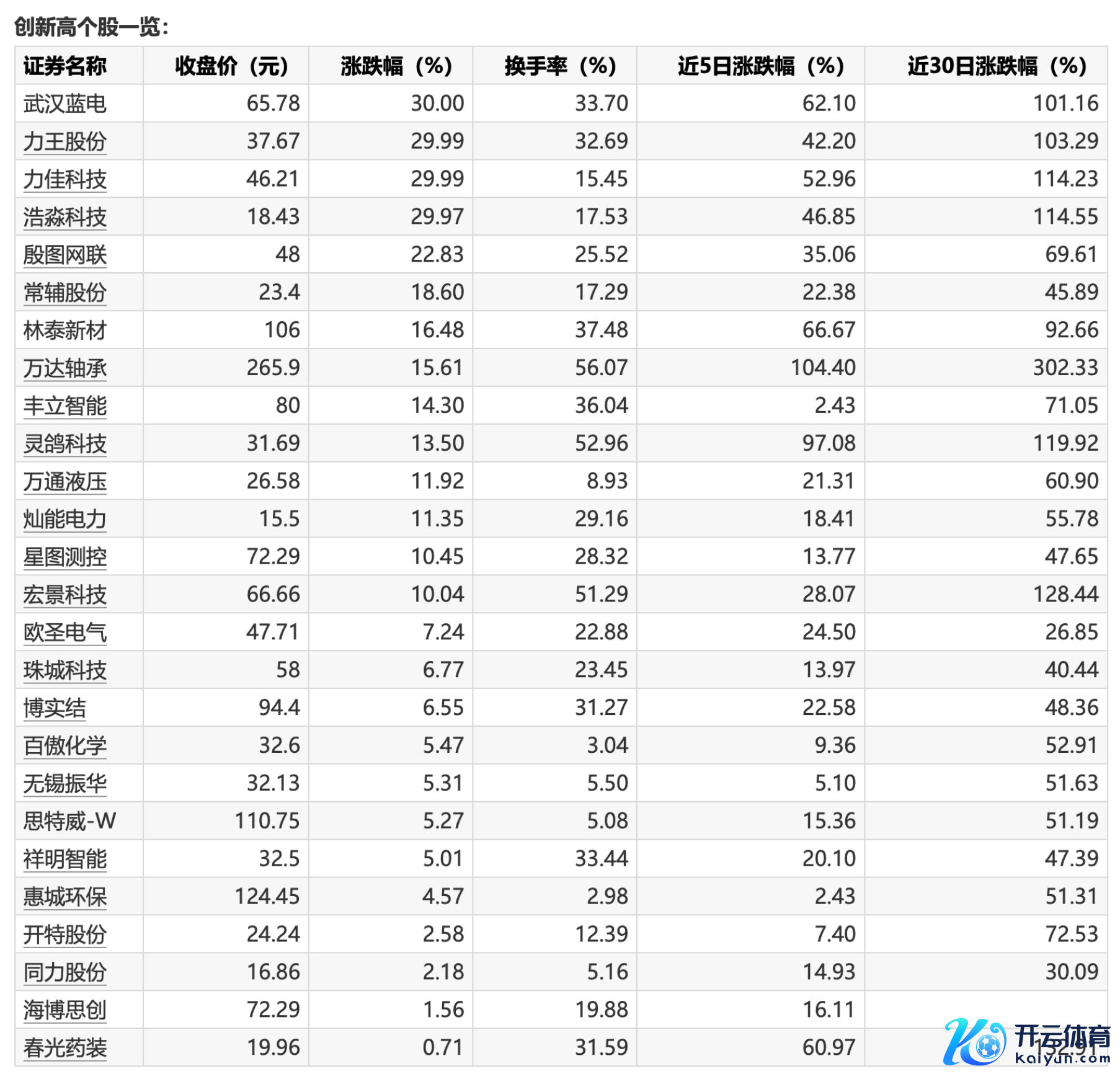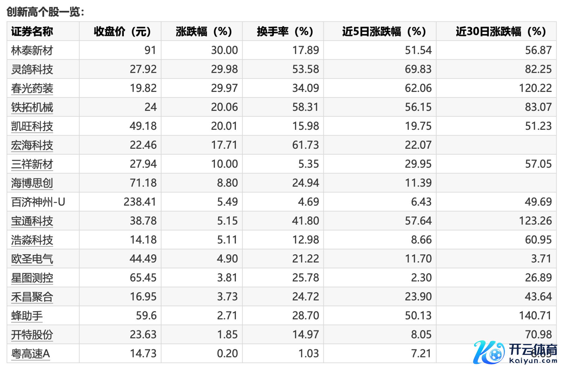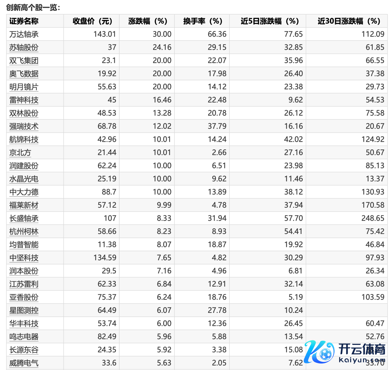 58只个股本日收盘创历史新高云开体育58只个股本日收盘创历史新高